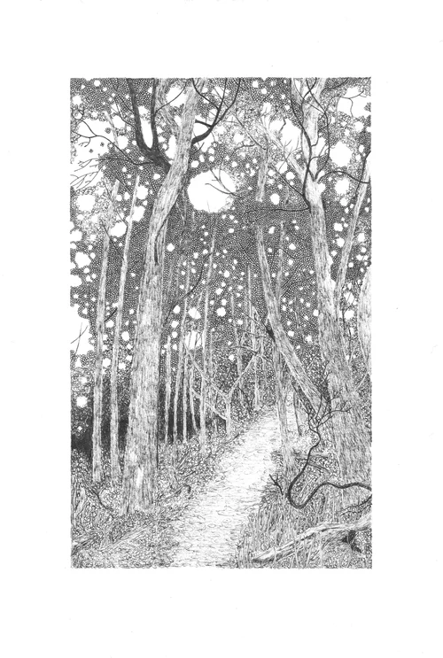 Indian Ink Bhutanese Paper Watercolour & Gouache Woodland Studies Native British Trees From The Road WSA Window View & Blackboards Woodland A Sequence of Events
